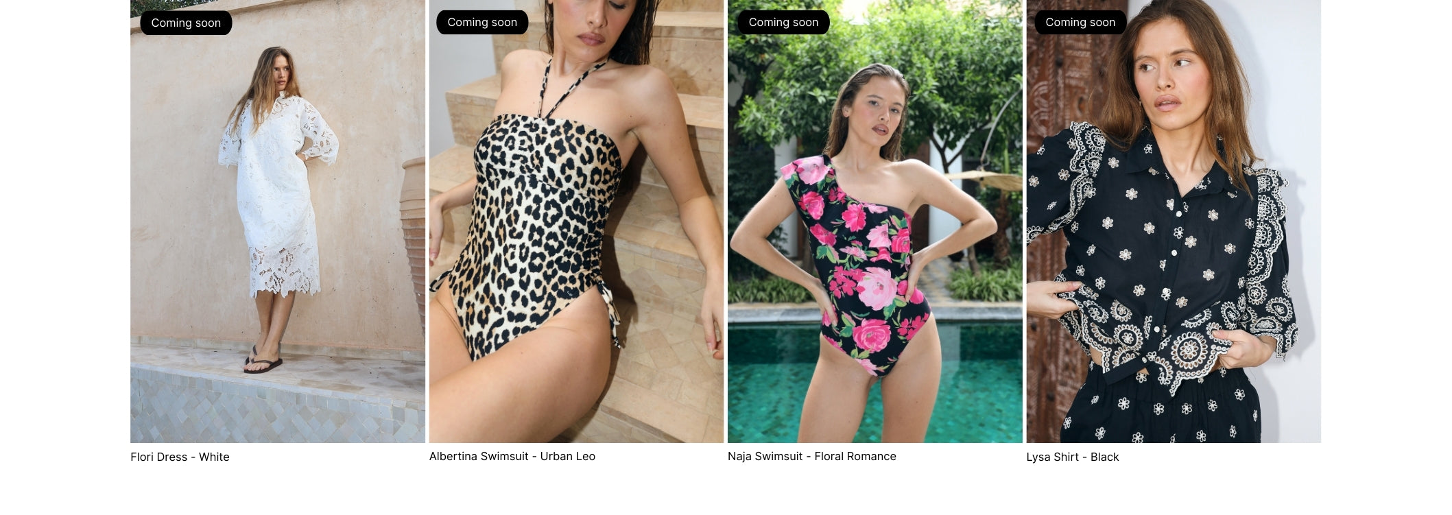 Flowing dresses create dramatic yet elegant movement, while the swimwear combines modern cuts with comfort and style. Leopard prints add an edgy touch, while blooming florals bring softness and feminine energy. The result is a collection that feels effortless, bold and undeniably summery - designed for women who want to stand out and feel confident all season long.