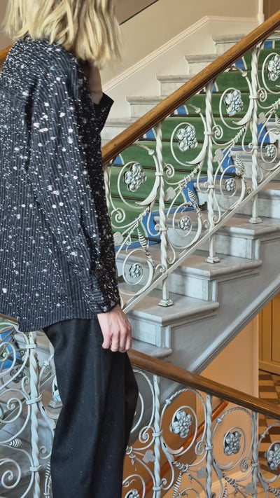 Elliecras Shirt is the shirt that blends timeless elegance with a playful edge. The design is covered in shimmering sequins that catch the light beautifully. With oversized chest pockets and an oversized fit, it’s both chic and comfortable – perfect for everything from office days to festive nights.
